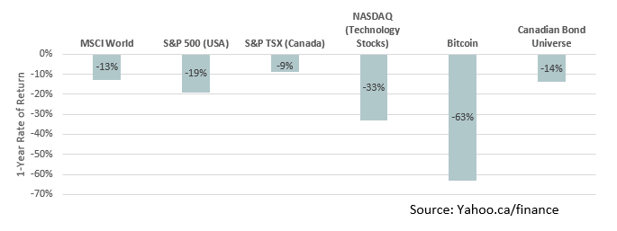 - Bonds. Which have long been considered a safe-haven for investors, experienced one of the most pronounced selloffs in modern history with the Canadian Bond Index declining by 14% over the course of the year.