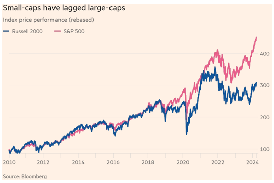 Second, the growth in value of Small-cap stocks, valued at $2-3 billion on average, has trailed behind large (S&P 500) stocks, we believe there is significant opportunity in these smaller-cap stocks. It is easy to be in love with the S&P 500 based on its recent performance. We need to also exercise caution and understand the associated risks.